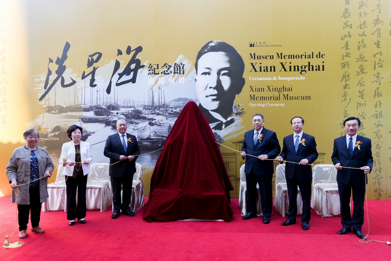 The opening ceremony of the Museum and the unveiling of the bronze statue of the musician were officiated by the Chief Executive of the Macao SAR Government, Chui Sai On; the Vice Chairperson of the National Committee of the Chinese People’s Political Consultative Conference, Edmund Ho Hau Wah; the Director of the Liaison Office of the Central People’s Government in the Macao SAR, Fu Ziying; the Commissioner of the Ministry of Foreign Affairs of the People’s Republic of China in the Macao SAR, Shen Beili; the Secretary for Social Affairs and Culture of the Macao SAR Government, Alexis Tam Chon Weng; and the musician’s daughter, Xian Nina. During the ceremonies, the Secretary for Social Affairs and Culture, Alexis Tam Chon Weng conferred a certificate of appreciation to Xian Nina for her support and assistance in the establishment of the Museum. The President of the Cultural Affairs Bureau, Mok Ian Ian, presented souvenirs to the Librarian of the Library of Chinese National Academy of Arts, Zhao Haiming, for the Library’s loan of the musician’s manuscripts and belongings from its collection to the Xian Xinghai Memorial Museum.