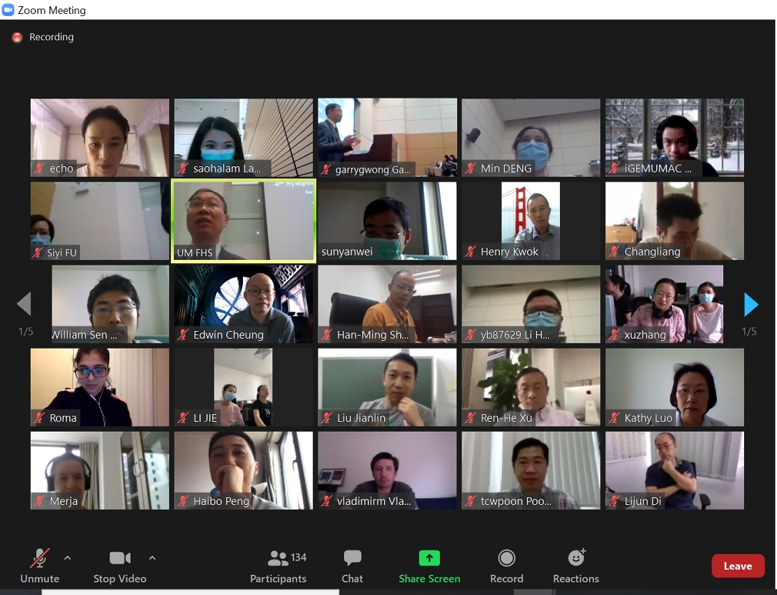 The University of Macau (UM) Faculty of Health Sciences (FHS) recently held the Fourth Symposium on Biomedical Sciences on the internet. More than 130 students, researchers, and scholars from Macao, mainland China, and overseas participated in the online event. They had in-depth discussions on a wide range of issues in the field of biomedical sciences. The event provided them with a platform to exchange ideas, learn from one another, and share research findings.