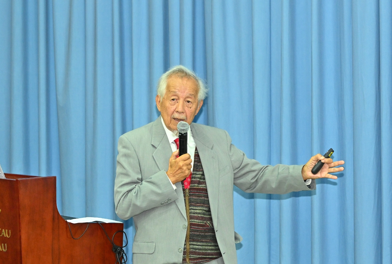 The University of Macau held a Doctor honoris cause Lecture today (1 December). Prof William Shiyuan Wang, honorary doctor of UM, gave a talk titled ‘SAPIENS—a Journey of 6 Million Years’. Referencing findings from fields such as anthropology, archaeology, genetics, and cognitive neuroscience, Prof Wang examined the six-million-year evolution of Homo sapiens and engaged in in-depth discussions on cutting-edge topics such as the development of artificial intelligence (AI). The event attracted many UM faculty and students, as well as people from different sectors of the community.