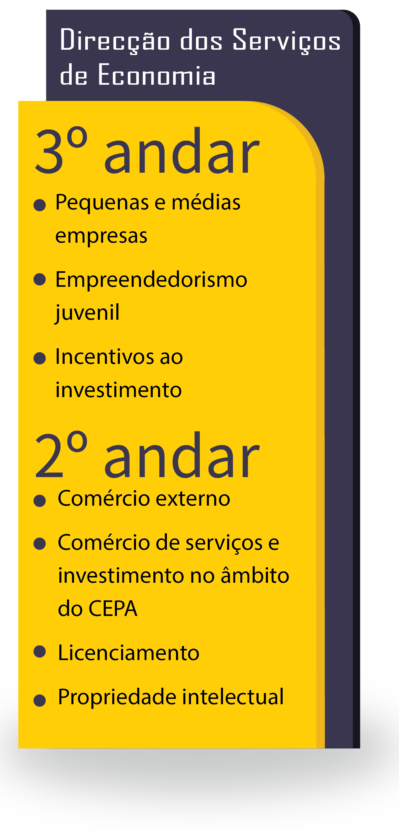 As áreas de serviços disponibilizados pelo Centro de Atendimento do 2.º andar incluem: o comércio externo, o comércio de serviços e investimento no âmbito do CEPA, licenciamento e propriedade intelectual. Quanto ao pedido e consulta de medidas relativas a pequenas e médias empresas, empreendedorismo juvenil e incentivos ao investimento, estes são disponibilizados constantemente no 3.º andar do mesmo edifício.