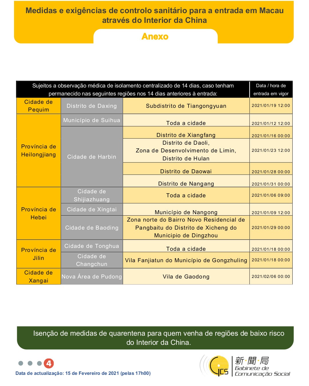 (Infografia) Medidas e exigências de controlo sanitário para a entrada em Macau de indivíduos de diferentes identidades, actualizadas no dia 15 de Fevereiro de 2021