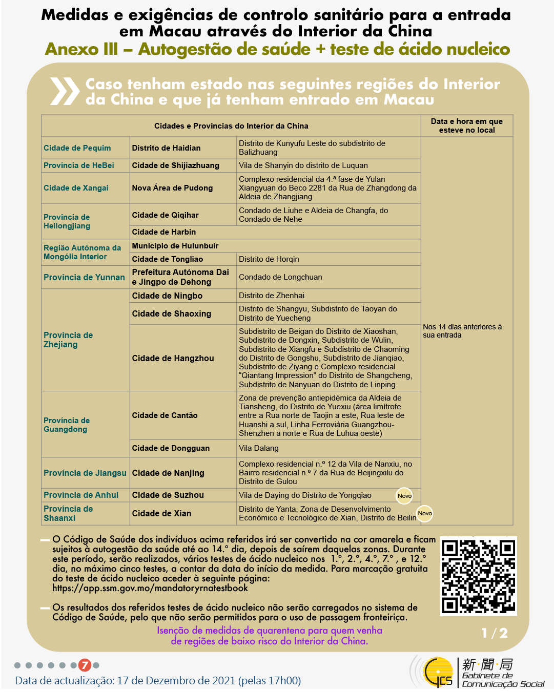 (Infografia)Medidas e exigências de controlo sanitário para a entrada em Macau de indivíduos de diferentes identidades, actualizadas no dia 17 de Dezembro de 2021