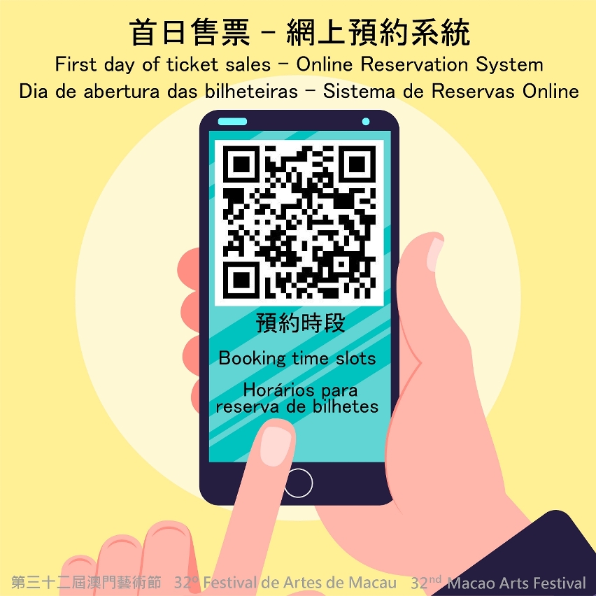 O 32.º Festival de Artes de Macau (FAM), organizado pelo Instituto Cultural (IC), decorrerá entre 29 de Abril e 2 de Junho. Os bilhetes para os espectáculos estarão disponíveis simultaneamente, nos postos de venda da Bilheteira Online de Macau, por telefone e por reserva online, a partir das 10:00 horas de 3 de Abril (Domingo). Por forma a colaborar com os trabalhos de prevenção e controlo da pandemia, a reduzir a aglomeração de multidões na aquisição presencial de bilhetes e a assegurar a saúde dos residentes, os membros do público são aconselhados a reservar os bilhetes online ou por telefone, estando disponível ainda o Sistema de Reservas Online para o dia de abertura das bilheteiras. Os membros do público que pretendam comprar bilhetes pessoalmente nos balcões no dia de abertura das bilheteiras, entre as 10:00 horas e as 13:00 horas, devem efectuar a respectiva inscrição no referido sistema, a partir das 10:00 horas do dia 31 de Março (Quinta-feira).