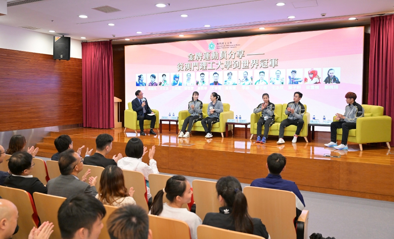 A Universidade Politécnica de Macau realizou, no dia 29 de Novembro, no Anfiteatro do Edifício Wui Chi, uma sessão de partilha intitulada “Partilha dos Atletas de Medalha de Ouro - da Universidade Politécnica de Macau ao Campeão do Mundo”, reunindo estudantes e graduados de medalha de ouro de várias competições internacionais, tais como os Jogos Asiáticos, Jogos Universitários Mundiais, Jogos Nacionais de Estudantes, Campeonato Mundial de Wushu, entre outros, partilhando o seu caminho do sucesso. O intercâmbio decorreu num ambiente caloroso, contando com a participação de cerca de 200 professores e estudantes da UPM.