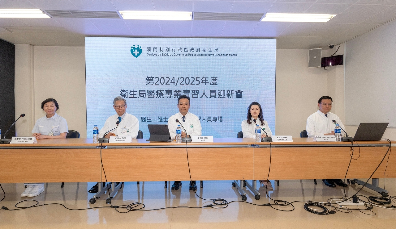 A partir do dia 1 de Novembro, começou, por fases, o estágio de profissionais de saúde do ano de 2024/2025. Os Serviços de Saúde realizaram uma sessão de “Recepção de Novos Estagiários Profissionais de Saúde”, presididas pelo Director dos Serviços de Saúde, Dr. Lo Iek Long, com presença do Director do Centro Hospitalar Conde de São Januário, Dr. Kuok Cheong U; a chefe substituta do Departamento de Cuidados de Saúde Comunitários, Dr.ª Wong In; a Enfermeira-Adjunta substituta da Direcção do Centro Hospitalar Conde de São Januário, Dr.ª Vong Kit Mei; e o Coordenador do estágio de profissionais de saúde dos Serviços de Saúde, o Médico Dr. Liang Sung Wen. Foram auscultadas as expectativas e opiniões colocadas pelos estagiários sobre o estágio e contou-se com a participação de mais de 240 pessoas.