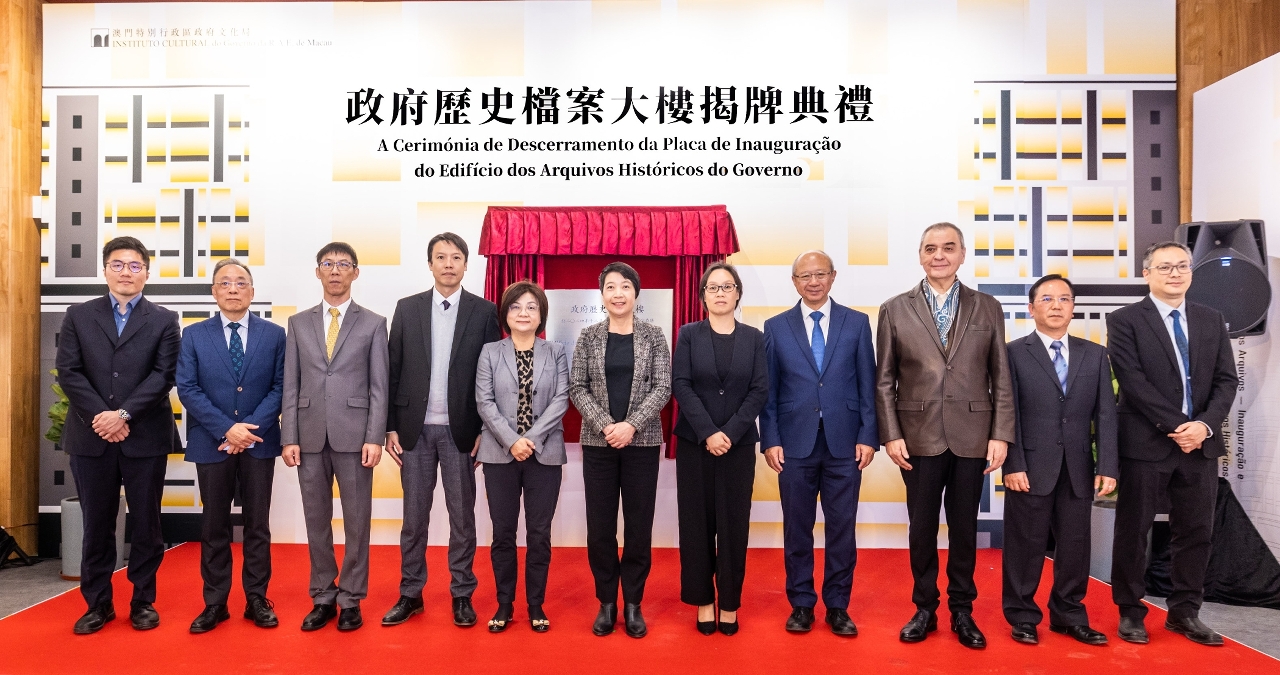Cerimónia de descerramento da placa do Edifício dos Arquivos Históricos do Governo elevando o trabalho arquivístico de Macau a um novo patamar