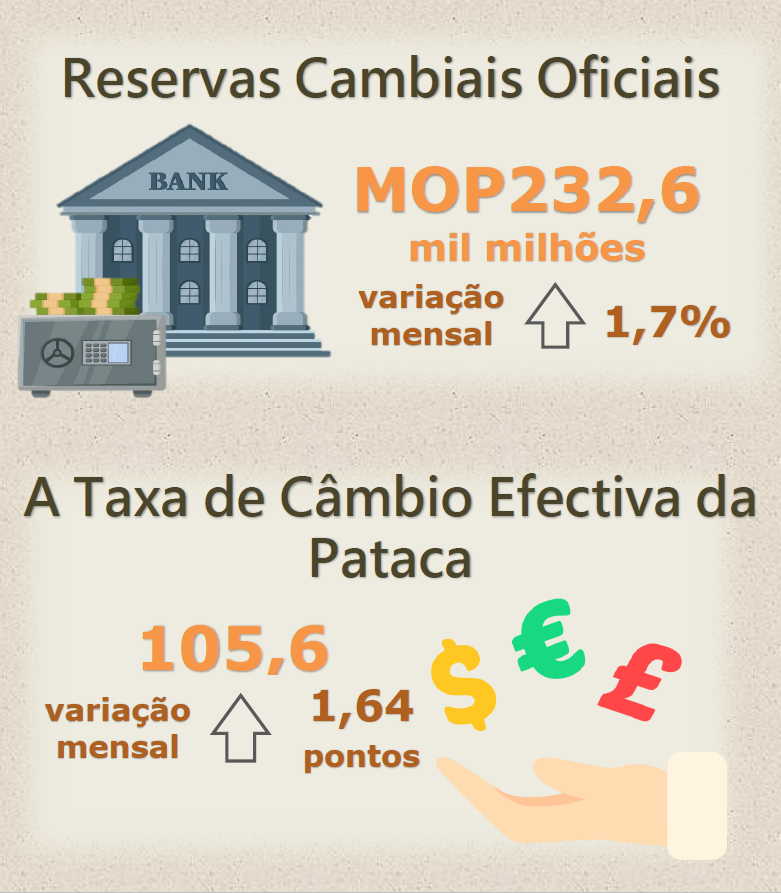 A taxa de câmbio efectiva da pataca, ponderada pelas suas quotas do comércio, foi de 105,6 em Novembro de 2024, registaram acréscimos de 1,64 pontos e 0,93 pontos, respectivamente, em comparação com os dados registados no mês anterior e com os reportados a Novembro de 2023, implicando que globalmente, a pataca valorizou-se em relação às moedas dos principais parceiros comerciais de Macau.