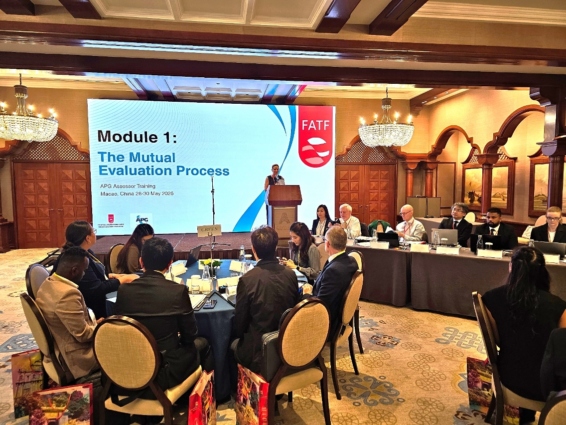 Para continuar a cumprir as obrigações da RAEM como membro do Grupo Ásia-Pacífico contra o Branqueamento de Capitais (APG) e formar profissionais locais nesta área, a RAEM, através da organização de conferências ou acções de formação de organizações internacionais, permite aprofundar a eficácia da cooperação com os intervenientes de outras jurisdições na prevenção e combate às actividades criminosas de branqueamento de capitais, financiamento ao terrorismo e financiamento à proliferação de armas de destruição maciça, o que demonstra o empenho da RAEM no cumprimento dos compromissos assumidos nas organizações internacionais. Neste âmbito, o Gabinete de Informação Financeira (GIF) dos Serviços de Polícia Unitários realizou, em conjunto com o APG, o Curso de Formação de Avaliadores do APG. O evento teve lugar em Macau, entre 26 e 30 de Maio de 2025, tendo contado com a participação de cerca de 40 representantes de diferentes jurisdições. O GIF coordenou ainda os serviços membros do Grupo de Trabalho Interdepartamental contra o Branqueamento de Capitais e Financiamento ao Terrorismo para participarem nesta acção de formação.