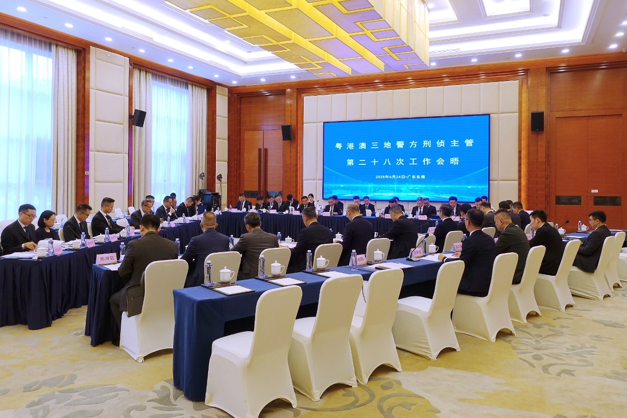 Realizou-se no dia 24 de Junho, em Dongguan, na província de Guangdong, o “28.º Encontro de Trabalho entre Responsáveis das Polícias de Investigação Criminal de Guangdong, Hong Kong e Macau”. As delegações policiais das três regiões foram chefiadas pelos senhores Comandante-geral dos Serviços de Polícia Unitários (SPU) de Macau, Leong Man Cheong, Subdirector da Directoria Provincial de Segurança Pública de Guangdong, Liang Ruiguo, e Segundo-comandante da Polícia de Hong Kong, Yip Wan-lung. O Subchefe da Divisão dos Serviços de Ligação para os Assuntos Policiais do Gabinete de Ligação do Governo Popular Central na Região Administrativa Especial de Hong Kong, Xu Hua e o Subchefe da Divisão dos Serviços de Ligação para os Assuntos Policiais do Gabinete de Ligação do Governo Central na Região Administrativa Especial de Macau, Xu Yongchang, foram especialmente convidados a participar na reunião.