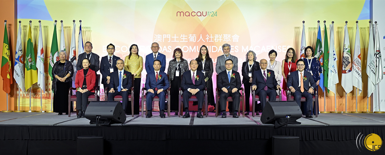 行政长官贺一诚与出席“澳门2024”澳门土生葡人社群聚会开幕典礼的嘉宾合影。