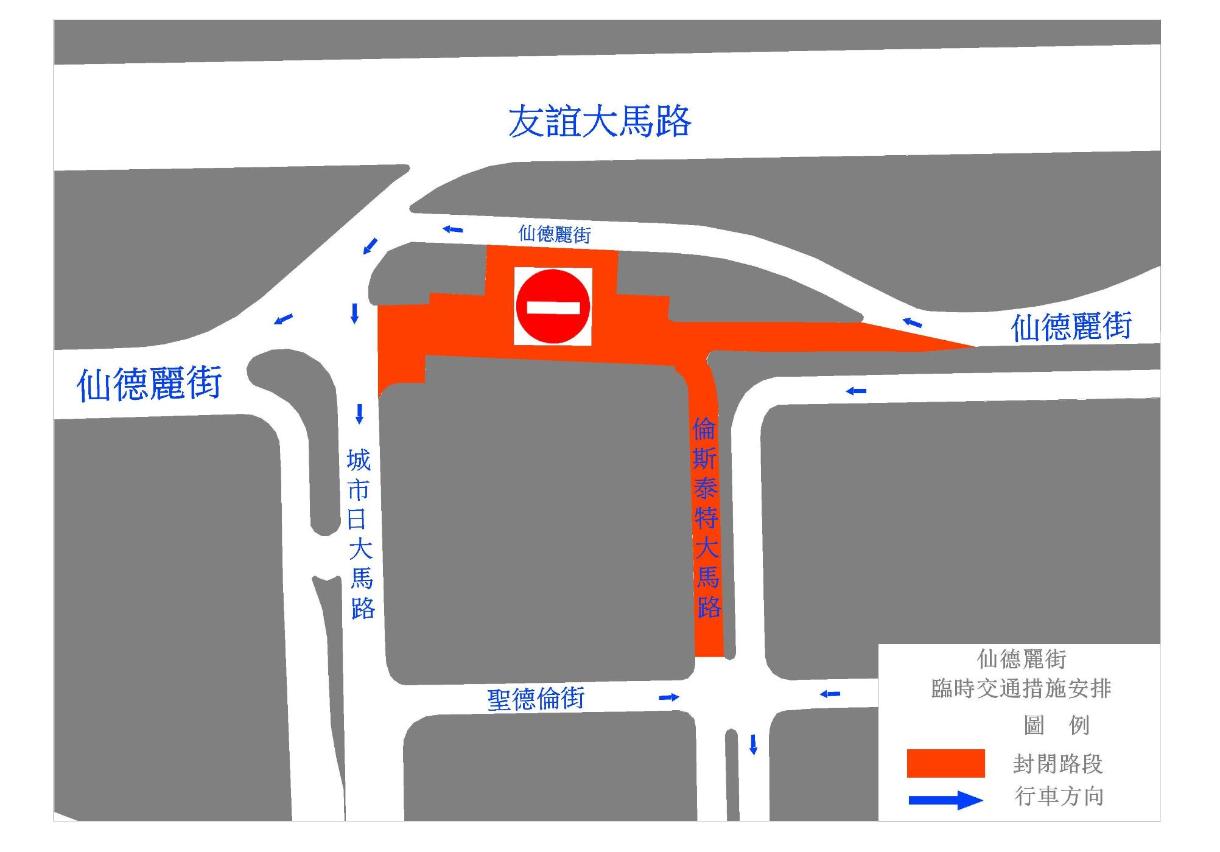 配合星际酒店举行醒狮活动,2月8日(年初四)清晨5时至中午12时,介乎城市日大马路与伦斯泰特大马路之间一段仙德丽街内路,及介乎仙德丽街与圣德伦街之间一段伦斯泰特大马路临时封闭交通,除活动车辆外,其他车辆禁止通行及停泊。交通事务局呼吁公众留意。