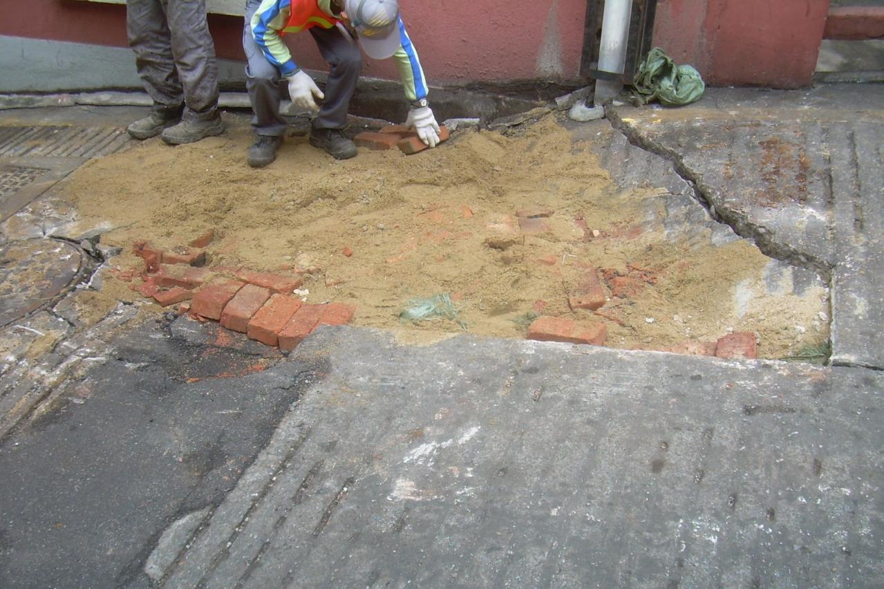 早前哪咤庙斜巷与永安围交界之渠井不断有污水及污物溢出,市政署随即派员疏通主渠,并对相邻管网进行详细检查,发现地下渠管严重破损及有下塌的情况,且因水土流失而导致车辆驶经时路面震动。经评估,认为该路段渠管有必要更换。在筹备工程期间,该路段疑受大雨影响,水土流失加剧,上周突然出现路面下陷。市政署即时派员作紧急临时处理,发现渠井与周边路基已存在空洞,对驾驶者构成安全隐患,恐情况恶化,故必须尽快开展地下渠管更换工程。