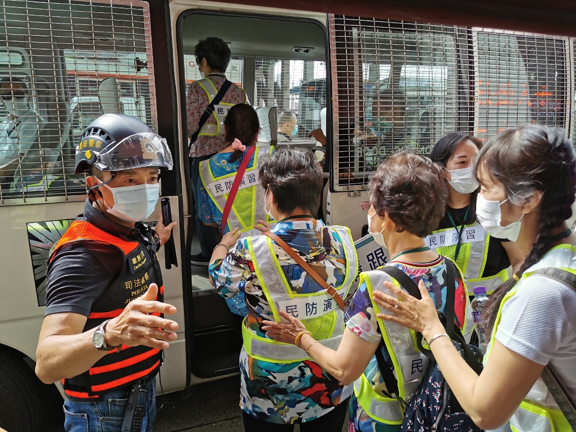 此外,司警局还联同民间社团进行专项演练,模拟共同协助需扶助人士前往避险中心,撤离期间有居民受伤,撤离小队人员立即通知应变指挥中心调度巡逻警车到场支援,藉此测试撤离工作人员面对突发情况的应变能力以及和指挥中心的协作能力,从而优化各项应急预案,提高撤离工作速度和效率。