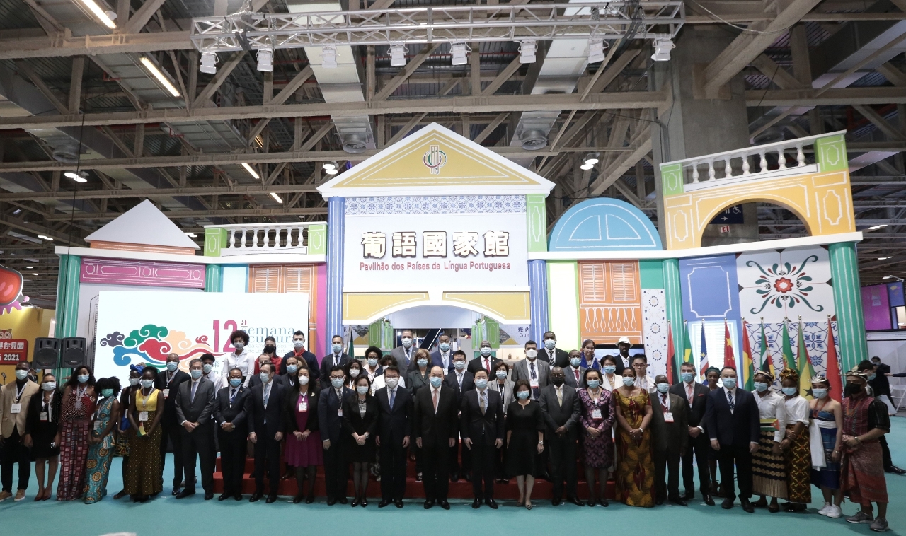 常设秘书处作为MIF合作单位,继续在展会期间设“葡语国家馆”,同时于PLPEX通过中葡平台展示推广葡语国家独特的产品。22日,澳门特区行政长官贺一诚、经济财政司司长李伟农一行莅临“葡语国家馆”参观交流,并与丁恬副秘书长、各葡语国家驻华使节等合影留念。