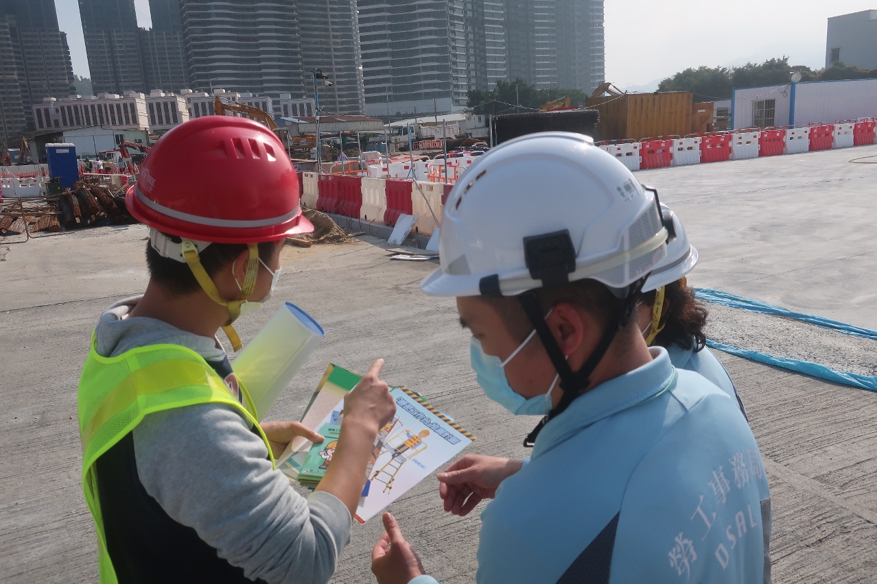 与此同时,劳工局人员于巡查期间向工地派发多款与工作安全有关的刊物、海报和单张,其中,有针对高处工作安全的《建筑工地工作安全指引》系列(繁、简体)小册子,如:【高空工作之棚架与危险开口篇】、【梯具平台应用篇】等,同时,局方人员亦提醒工地须严格执行各项防疫措施,并为工友进行职安健宣导和教育工作等。
