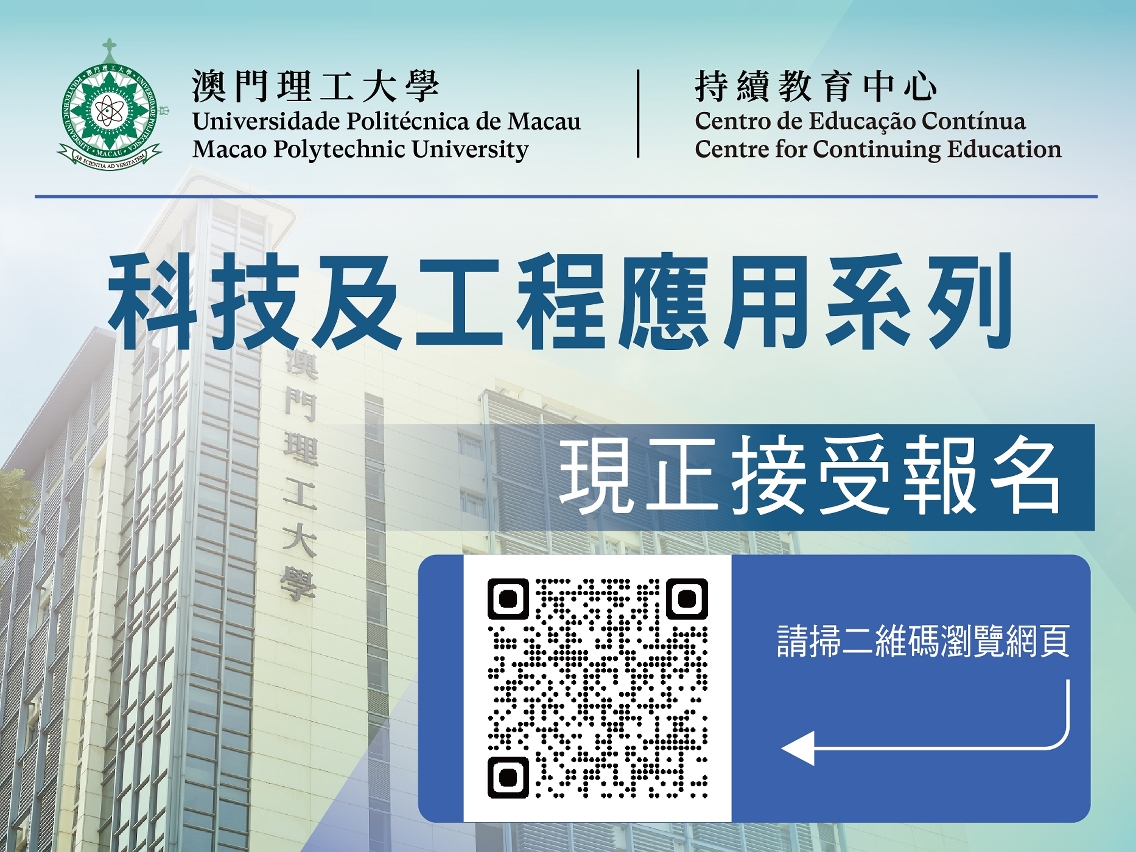 澳门特区政府近年锐意推动智慧城市发展策略,透过运用科技及优化流程加大电子政务覆盖范围,为配合新时代发展的需要,澳门理工大学持续教育中心推出《科技及工程应用系列》课程,包括:“数码转型实践与应用”、“大数据与产业应用实务”、 “大数据分析应用进阶” 及 “智慧旅游发展与应用”等。课程现正接受报名,欢迎有兴趣人士报读。