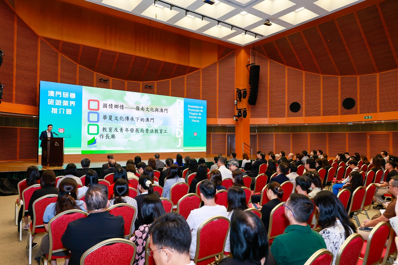 旅游局今(24日)举办“澳门研学旅游业界推介会”,邀请相关政府部门、私企及高等院校介绍各自领域的研学资源,让旅游业界熟悉澳门的研学资源,把握澳门研学旅游的发展机遇,推出具澳门特色的研学旅游线路及产品,促进“旅游+教育”的发展,共同打造澳门成为研学旅游目的地。