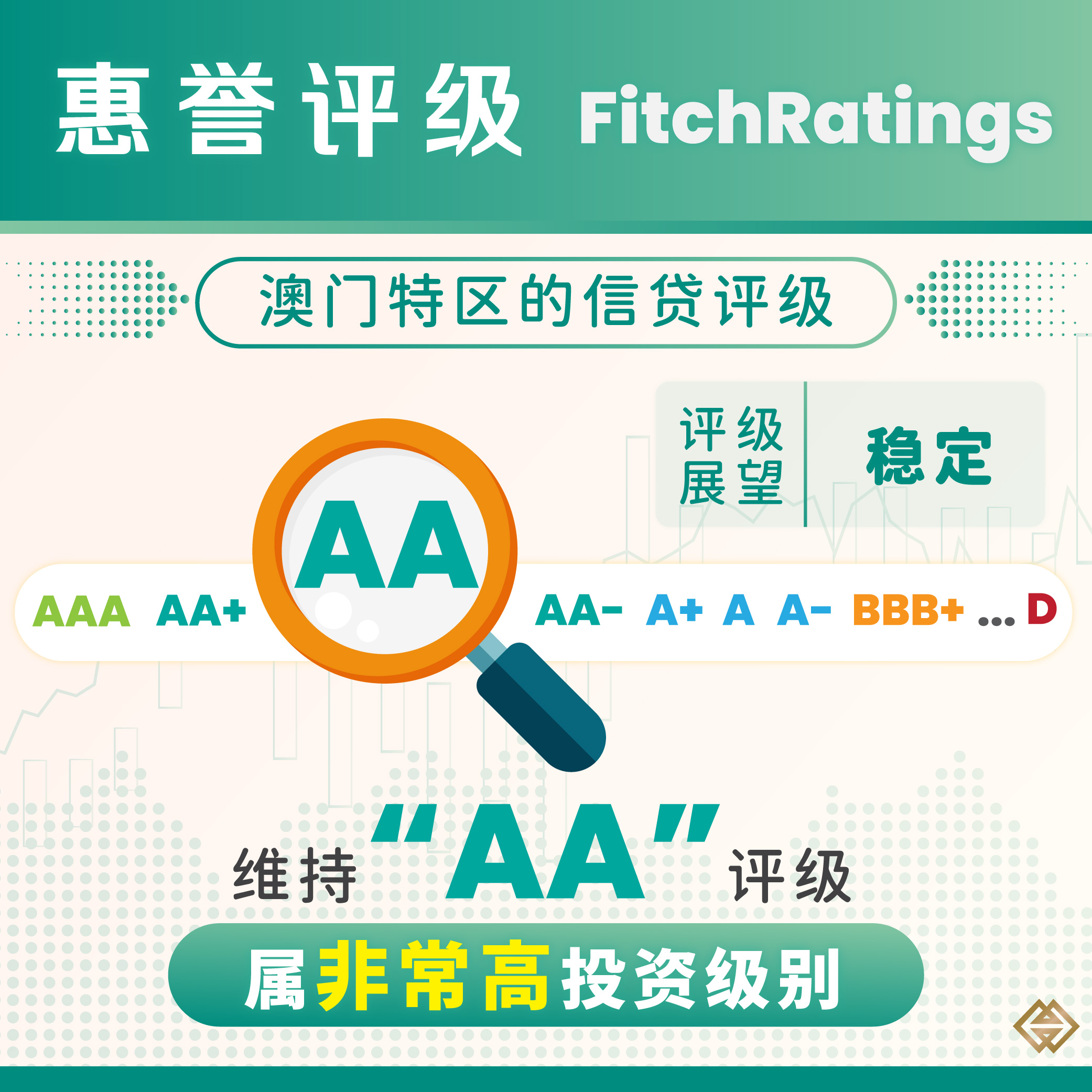 惠誉国际评级有限公司(Fitch Ratings,下简称“惠誉")今(4)日公布维持澳门特区的“AA”长期本外币发行人信贷评级,评级展望为“稳定”。