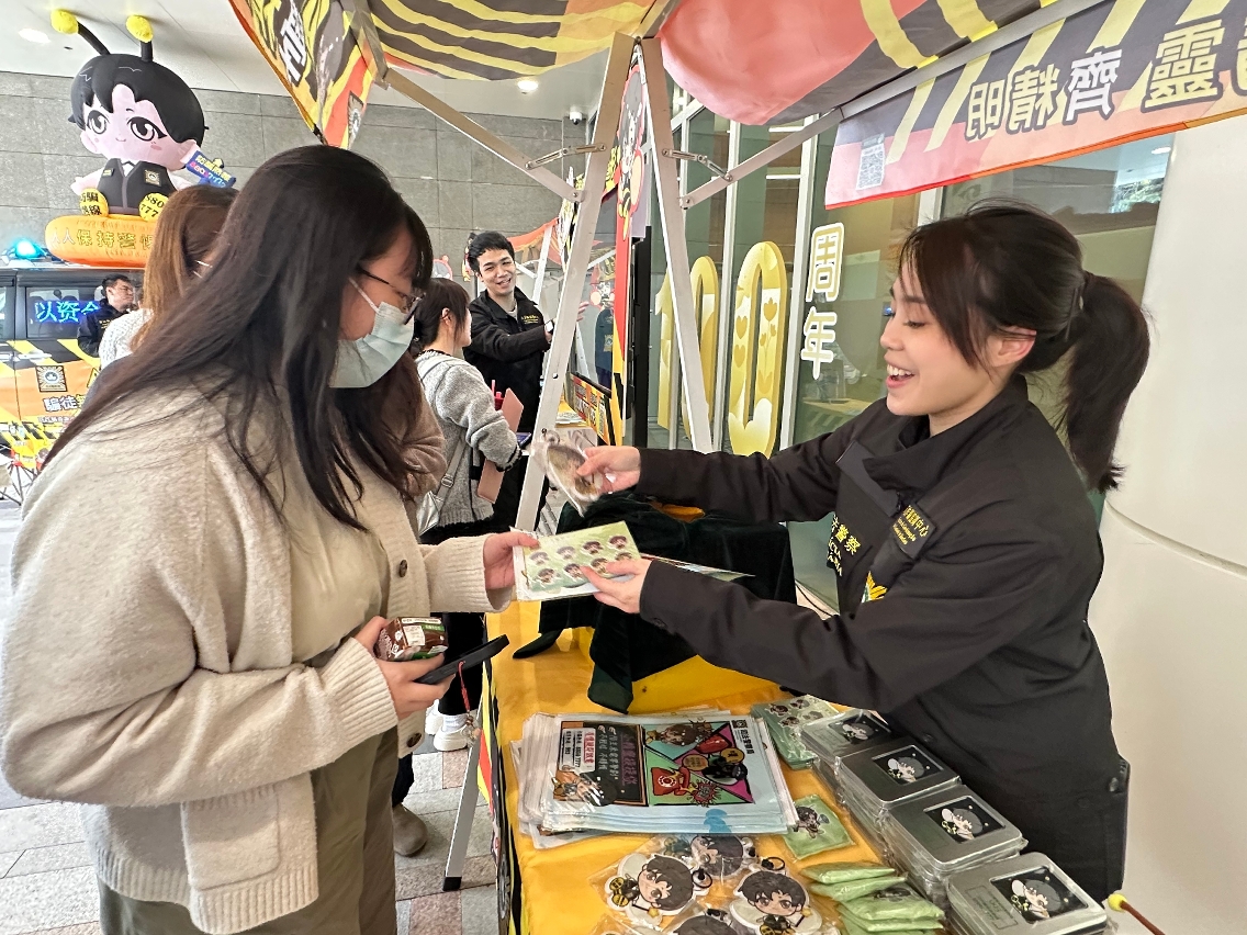 “反诈宣传车”设计新颖,车身印有清晰显眼的防骗标语“一人醒目,全家精明;人人保持警惕,骗徒无所遁形”,车顶上装设高逾3.8米的司警局反诈吉祥物“防骗小精灵”大型公仔,既引人注目,又能令人对宣传车和相关防骗宣传留下深刻印象。宣传车还可延伸扩建户外摊位设施,随时设置流动防骗推广行动站,站内共设有四个主题摊位,包括:“智慧防骗加油站”── 设有防骗测验卷供学生填写,司警局人员会即时对未能取得满分的参加者进行针对性讲解,加深其对各类骗案手法的了解;“反诈程式你要识”── 司警局人员即场讲解及演示如何透过“反诈程式”识别骗局及上报涉诈讯息;“全民防骗大作战”──以轻松有趣的触屏小游戏,让参与者在游戏中学习防骗知识,寓教于乐;“反诈精英齐留影”── 为参加者即场拍照并打印成个人化照片,照片上附有精心设计的反诈主题及警醒口号,不仅能让参加者留作纪念,还能持续唤起其参与活动的回忆,有效提醒其关注防骗资讯。