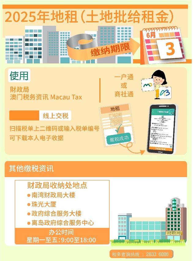 2025年地租(土地批给租金)的最后缴纳期限至6月3日,仍未缴纳上述地租的纳税人应尽快缴纳,避免因逾期缴纳而须附加过期利息和罚款。