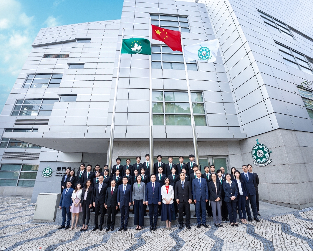 升旗仪式由澳门理工大学学生国旗仪仗队执行,仪仗队队员精神抖擞,迈着整齐划一、铿锵有力的步伐,护送着中华人民共和国国旗、澳门特别行政区区旗以及澳门理工大学校旗走向升旗台。在激昂的《义勇军进行曲》中,五星红旗冉冉升起,场面庄严隆重。