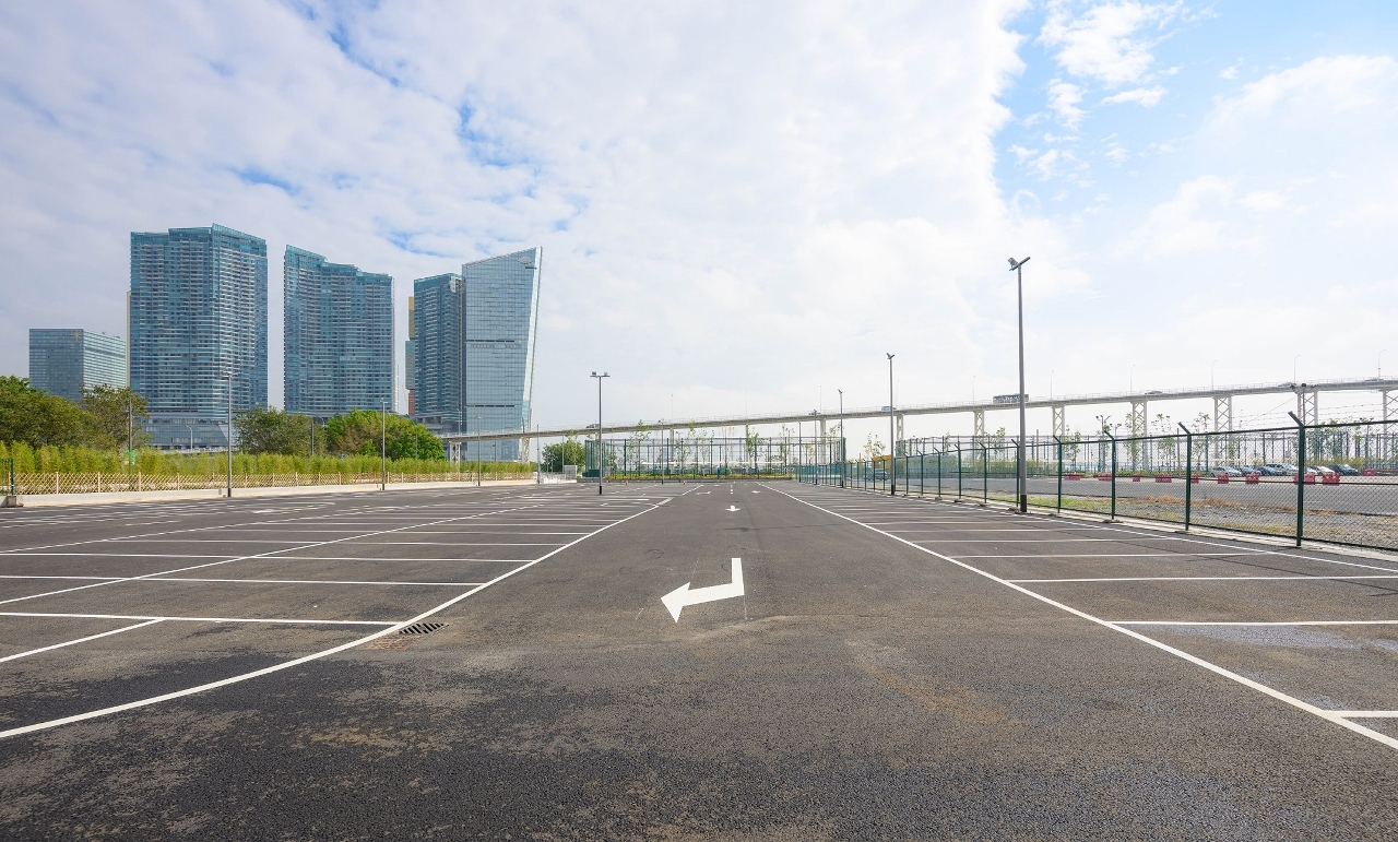 由于南岸海滨绿廊二期整体工程尚未完成,为方便公众使用一区设施,经交通事务局协调及考虑周边的交通环境,于一区旁设置了可停泊110辆汽车及约100辆电单车的临时停车场,车辆可经观光塔街进出,行人亦可经设于孙逸仙大马路的临时行人道出入。
