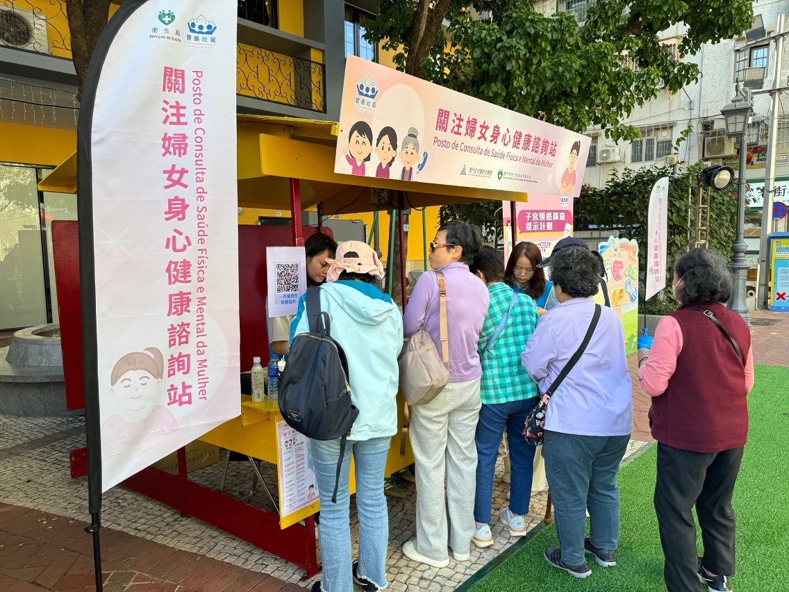 于11月22及23日连续两天,卫生局联同本澳11个机构举办了“关注妇女身心健康咨询站”主题活动,活动共吸引逾17,000人次参与,反应热烈。分别在澳门、氹仔及路环区共11个地点设置了“关注妇女身心健康咨询站”,主题包括推广“子宫颈癌筛查”、 “乳腺癌筛查”、 “心理健康”及“孕产妇健康管理平台”等妇女关注重点。站内分别有卫生局医疗人员和社区医疗人员提供健康咨询及疑难解答等,透过专业医疗咨询、游戏互动及派发健康宣传品等向居民传播实用的健康知识。