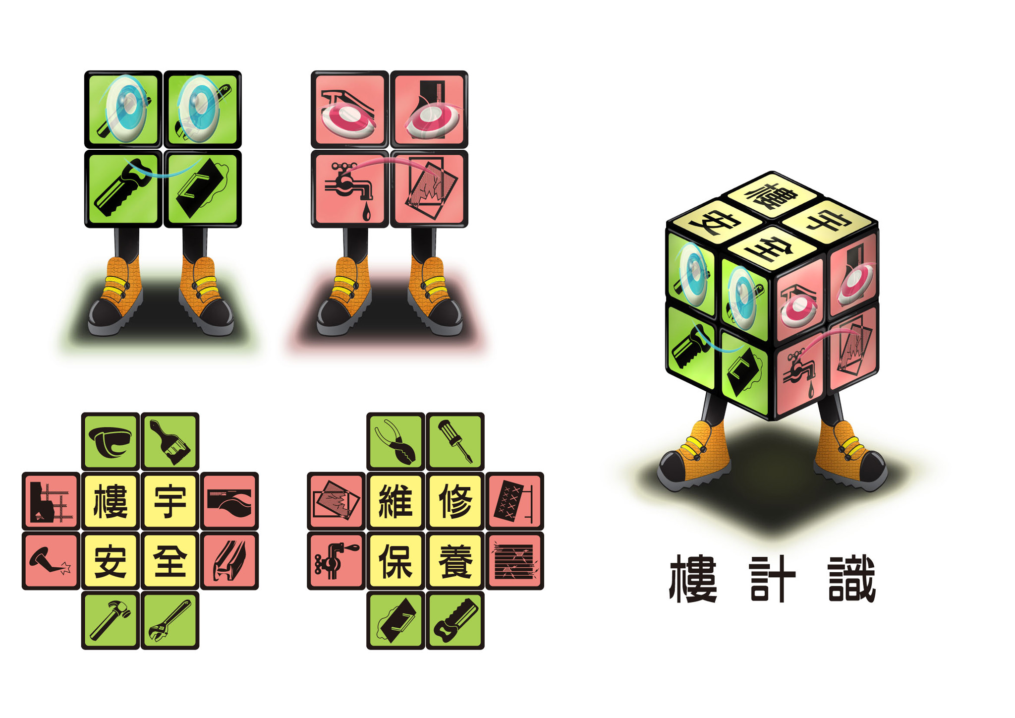 冠軍得奬者林松傑,作品名稱“維神、修神”,設計概念源自於中國傳統守護每家每戶的門神,從而引申到樓宇維修的重要性,設計手法是以傳統門神外形配合卡通化手法表達「維修」的形象,以趣味手法形容良好的樓宇維修觀念,也能時刻守護居住環境的安全;亞軍姜家樂(伙工頭);季軍潘詠茵(樓計識);優異奬黃斌(Dr. B)、黃嘉敏(搭棚Panda)、徐志宏(安安)、黃慧盈(建仔)及楊林鳳(阿亮)。