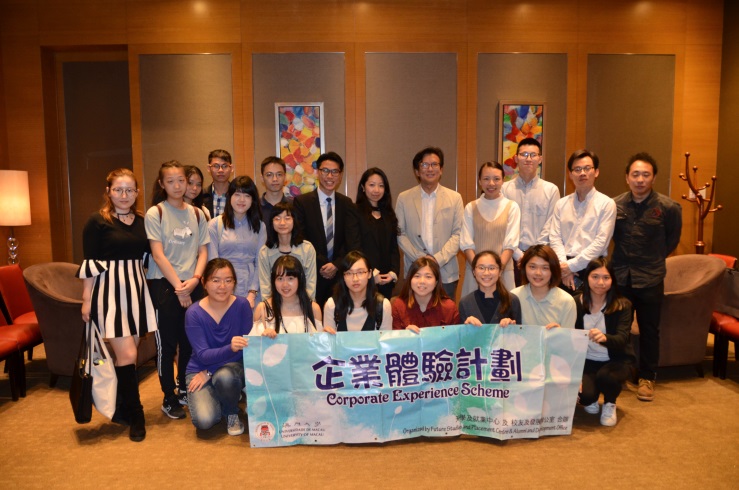 澳大學生獲銀娛代表的熱情接待。銀娛代表介紹了其公司架構、業務營運等資訊,並帶領學生參觀酒店套房的獨特配置及休閒娛樂設施。三位任職銀娛管理層的澳大校友也出席分享會,包括公共關係企業及社區關係助理副總裁姚嘉茵(2001英語研究),角子機遊戲分析、博彩發展及優化事務助理副總裁關光耀(2013工商管理碩士)及組織發展及培訓高級經理盧雅文(2015工商管理碩士),與學生分享就業前景及工作經驗。