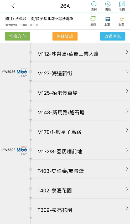 有關系統目前覆蓋20條巴士路線,分別是:1、1A、3、3A、5、7、8、10、12、22、23、25、25B、26A、33、34、101X、102X、AP1和MT4,佔現行營運中的巴士總量近四成。1月21日(周二)起,率先覆蓋1、10、33及101X路線的其中100台巴士,乘客透過手機應用程式“巴士報站”App可以查看相關巴士之載客量;2月底前將增至顯示更多路線共200台巴士之載客量,餘下157台巴士之載客量則預計於3月底前向公眾顯示。