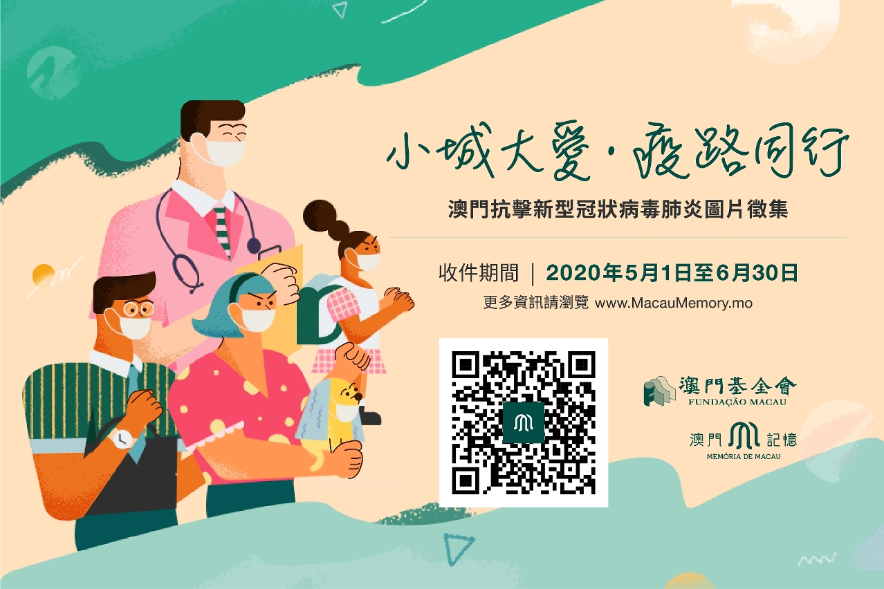 新型冠狀病毒肺炎肆虐,澳門各界全力配合特區政府,以積極的心態面對“疫”境,充分體現了澳門市民守望相助、共克難關的精神與氣魄。澳門基金會的“澳門記憶”文史網 (www.MacauMemory.mo) 特開展“小城大愛.疫路同行——澳門抗擊新型冠狀病毒肺炎圖片徵集”,以真實記錄全城抗疫的珍貴瞬間,共同構建澳門市民眾志成城、齊心抗疫的記憶。徵集活動於網上進行,收件期由本年5月1日至6月30日,並設有多個獎項。