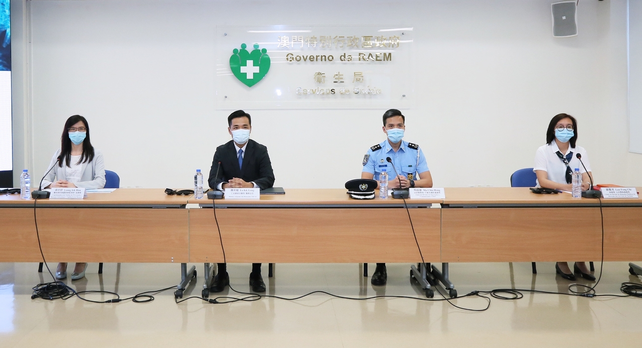 新型冠狀病毒感染應變協調中心於今(3)日舉行例行記者會,仁伯爵綜合醫院羅奕龍醫務主任、治安警察局行動及通訊處馬超雄處長、旅遊局公共關係處劉鳳池處長、疾病預防控制中心傳染病防制暨疾病監測部梁亦好協調員共同會見傳媒。