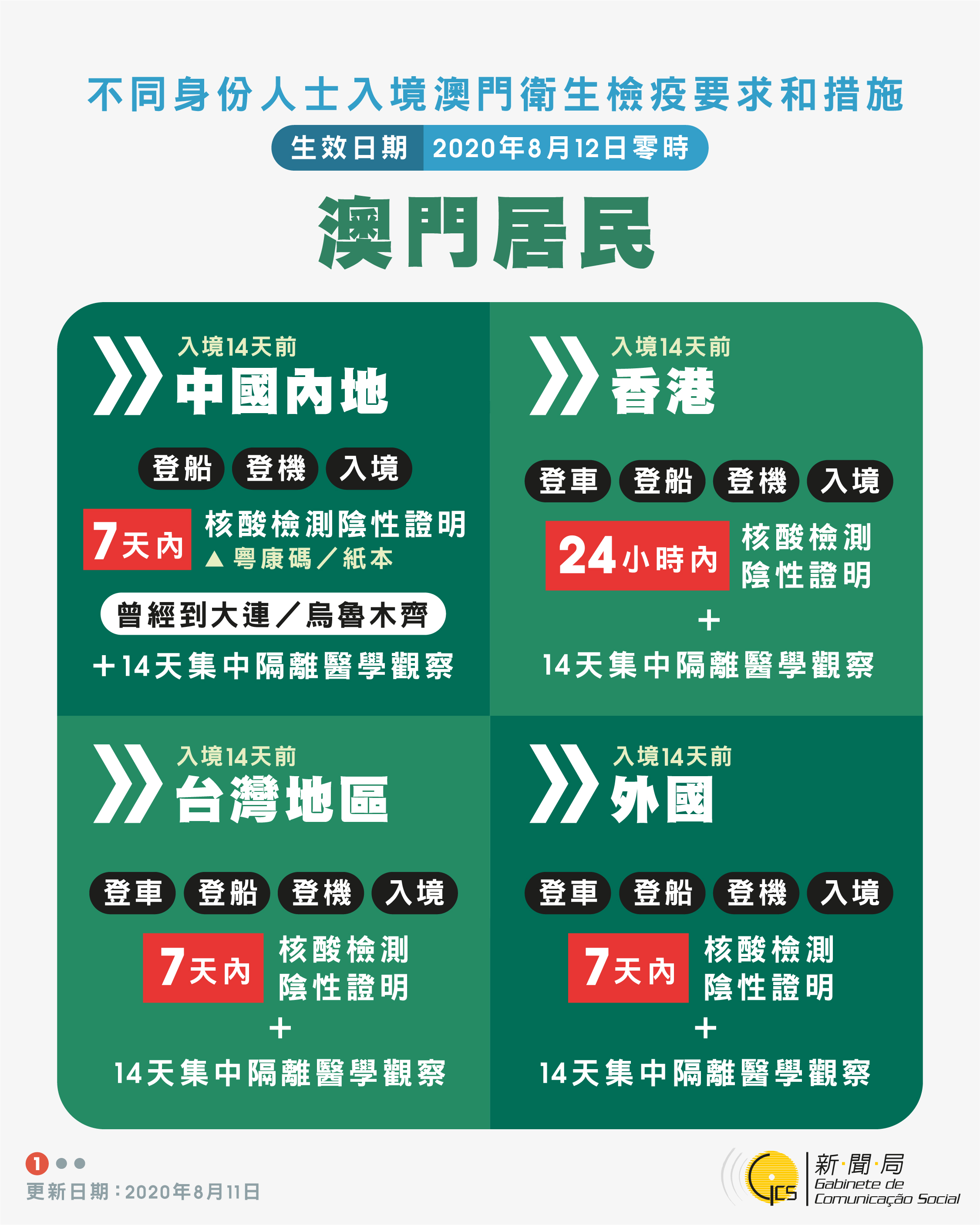 【圖文包】不同身份人士入境澳門衛生檢疫要求和措施