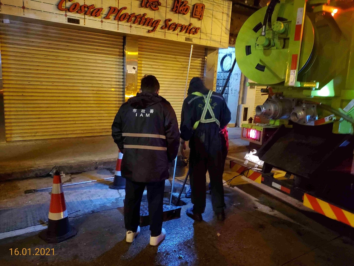 市政署於每年風雨季來臨前重點跟進經常淤塞的下水道狀況,確保渠網排澇效能正常,去年引入外判下水道影像記錄及清渠服務,藉以加強對渠網精準檢查、清淤及養護。首階段對經常淤塞的下水道展開工作,並已完成北京街與上海街部分內街之下水道清淤。