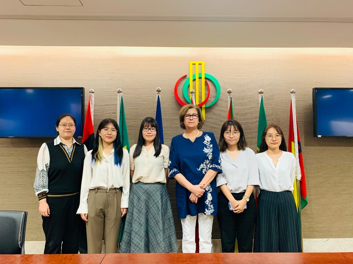 • 中葡論壇聯絡辦公室主任兼葡萄牙派駐代表布思麗與實習學生交流留影