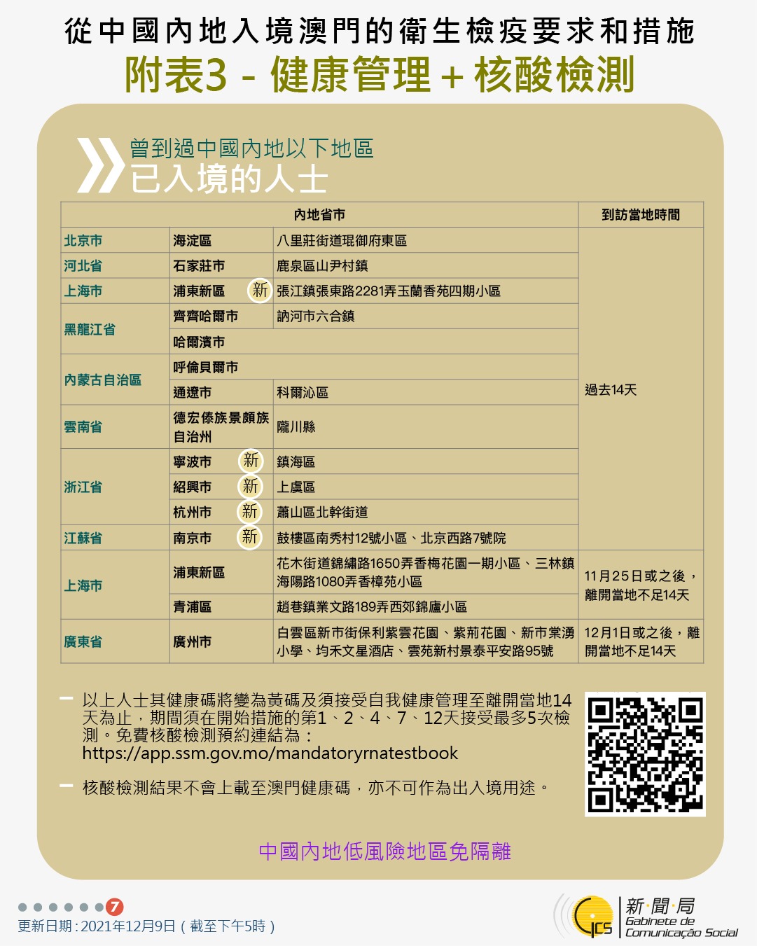 【圖文包】2021/12/9最新入境澳門衛生檢疫要求和措施