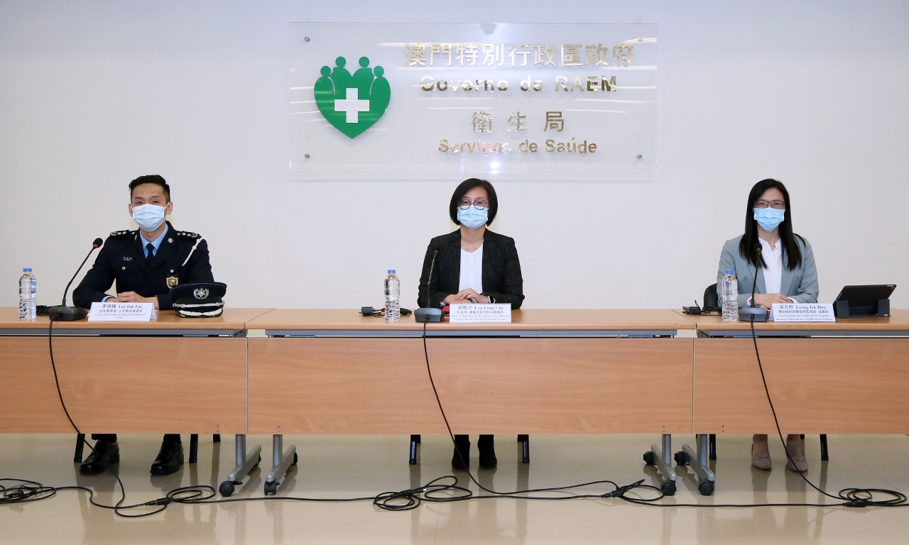 新型冠狀病毒感染應變協調中心(下稱應變協調中心)於今(16)日舉行記者會,旅遊局傳播及對外關係廳劉鳳池廳長、治安警察局公共關係處李德輝處長和疾病預防控制中心傳染病防制暨疾病監測部梁亦好協調員共同會見傳媒。