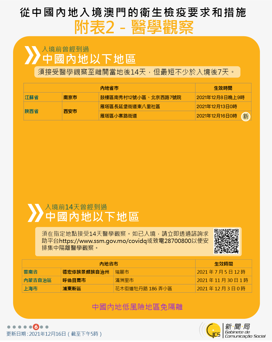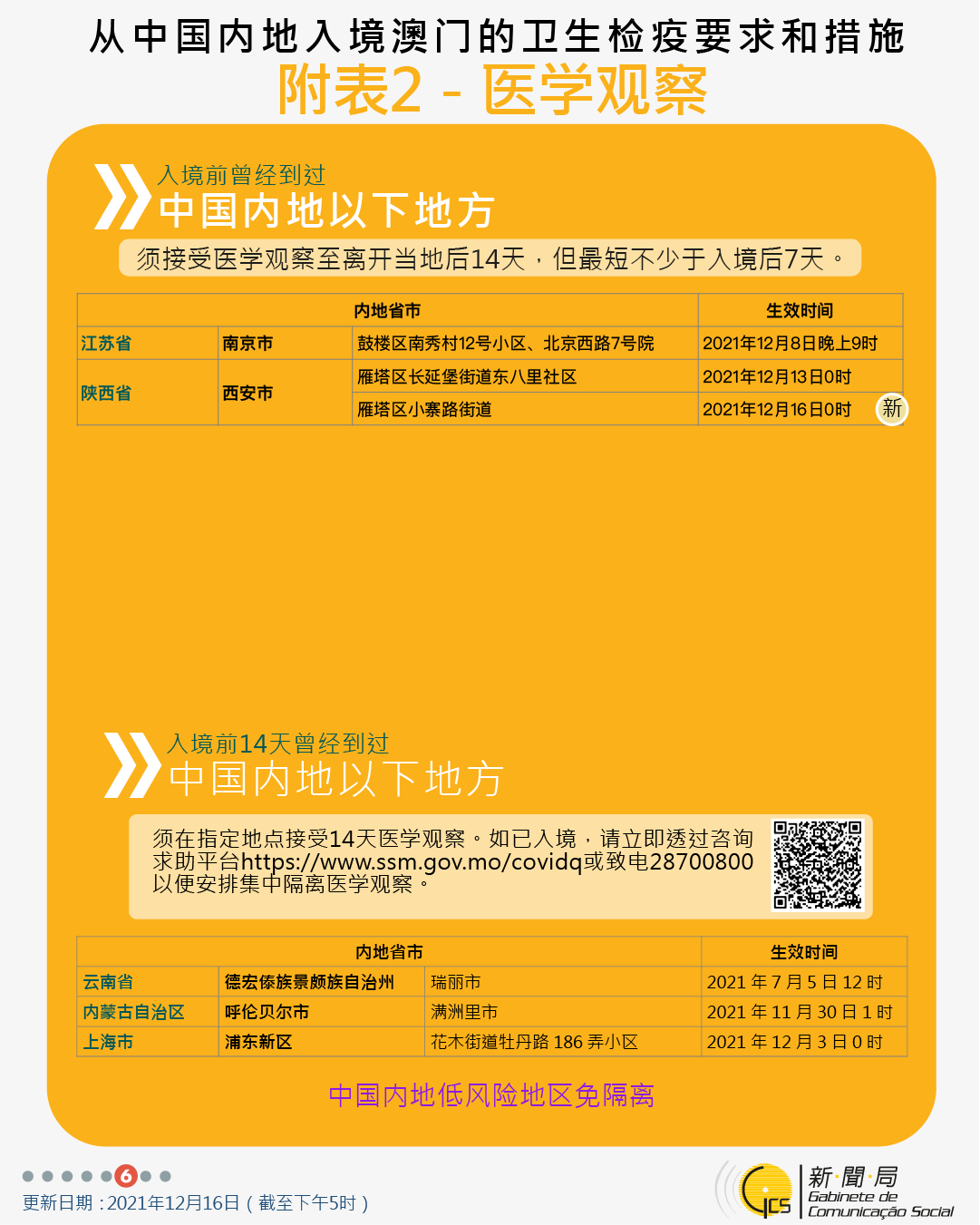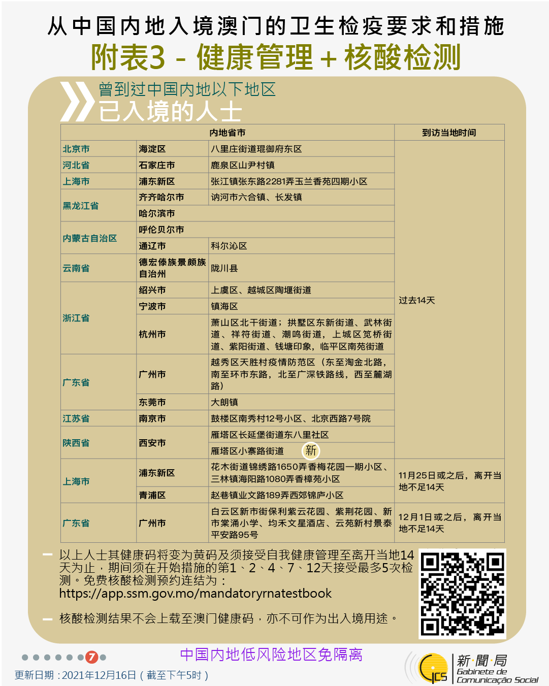 【圖文包】2021/12/16最新入境澳門衛生檢疫要求和措施