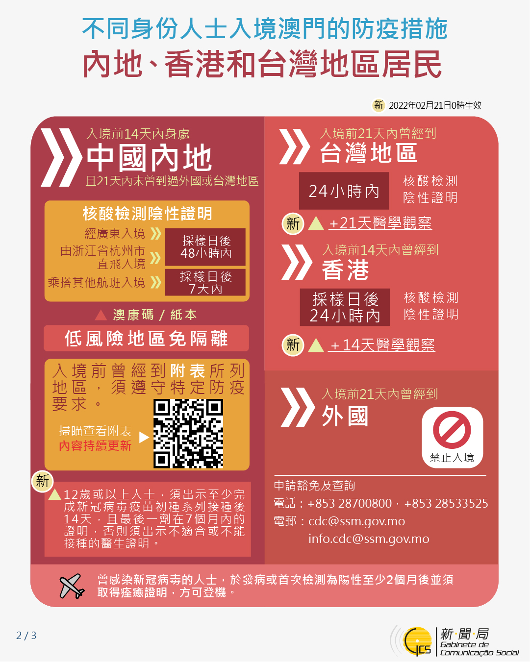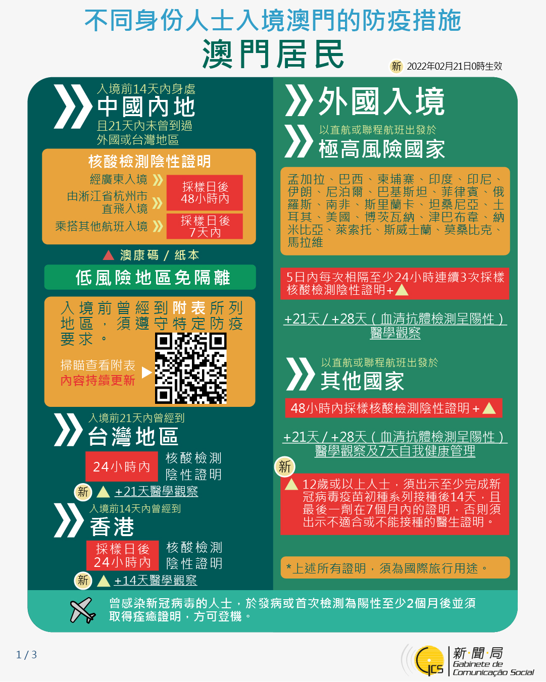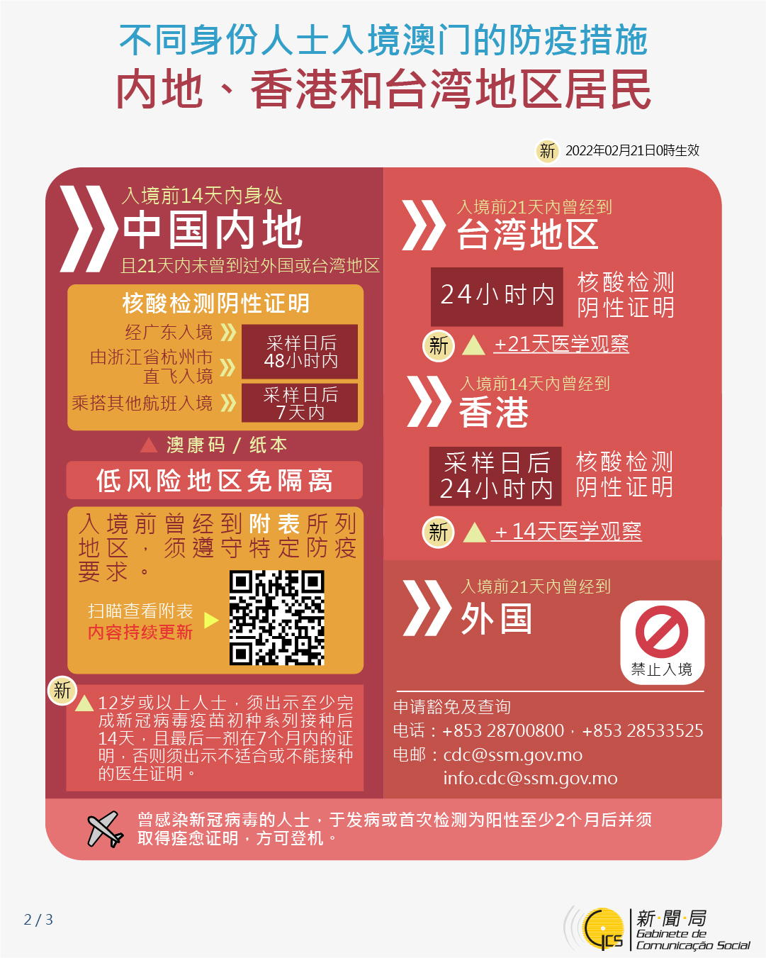 【圖文包】2022/2/16最新入境澳門的防疫措施