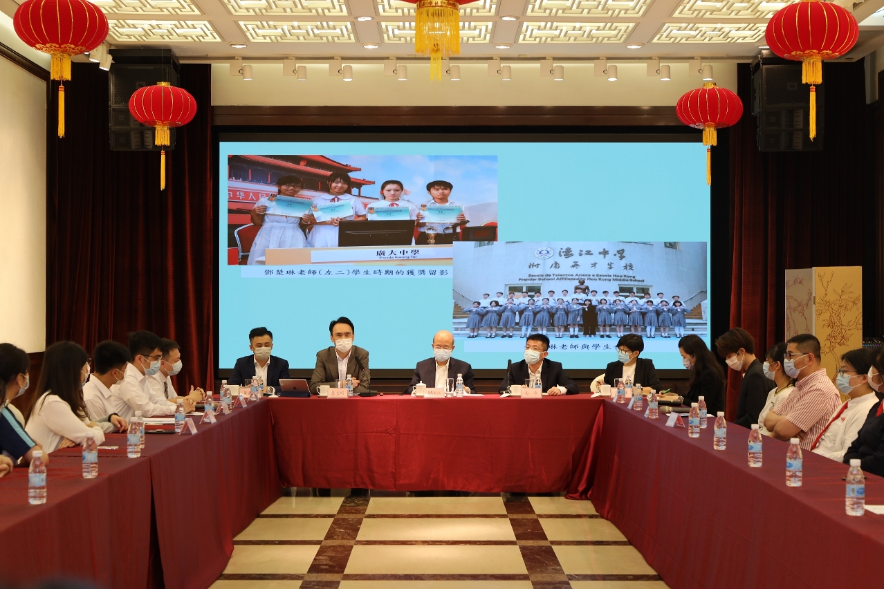 劉顯法向師生回顧百年黨史及名句故事,加深他們對中華民族偉大復興進程的瞭解,讓青年從歷史經驗把握重要思想方向,繼續弘揚愛國愛澳傳統精神;並強調中央政府高度重視青年、培養青年;同時勉勵青年學生需堅守“永久奮鬥”的光榮傳統,把平凡的崗位作為成就人生的舞台,用艱辛努力推動社會發展,不負韶華,更好地迎接新時代的機遇及挑戰,勇於擔當時代發展的重任。