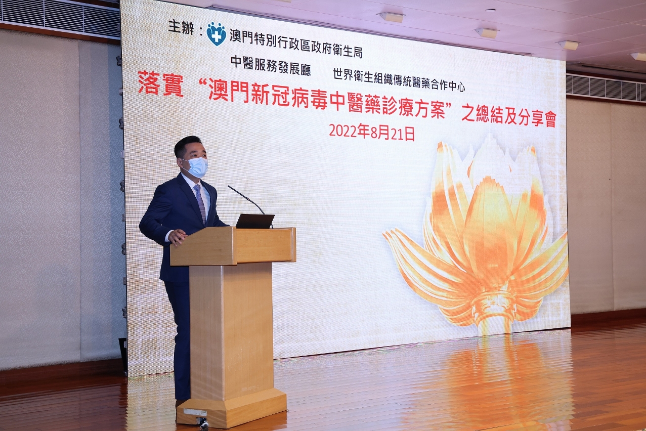 羅奕龍局長致辭時表示,過去澳門的中醫工作更多著重科普宣教及保健方面,但近期新冠病毒疫情爆發期間,首次使用中西醫並重的治療方法,把中醫藥列作為新冠病毒治療的手段之一。例如,酒店隔離的核酸檢測陽性人士中,有至少有三分之二人願意接受中醫指導用藥,且不少是外籍人士主動提出接受中醫服務。由此可見,中醫在抗疫中發揮的作用得到高度肯定及認可。