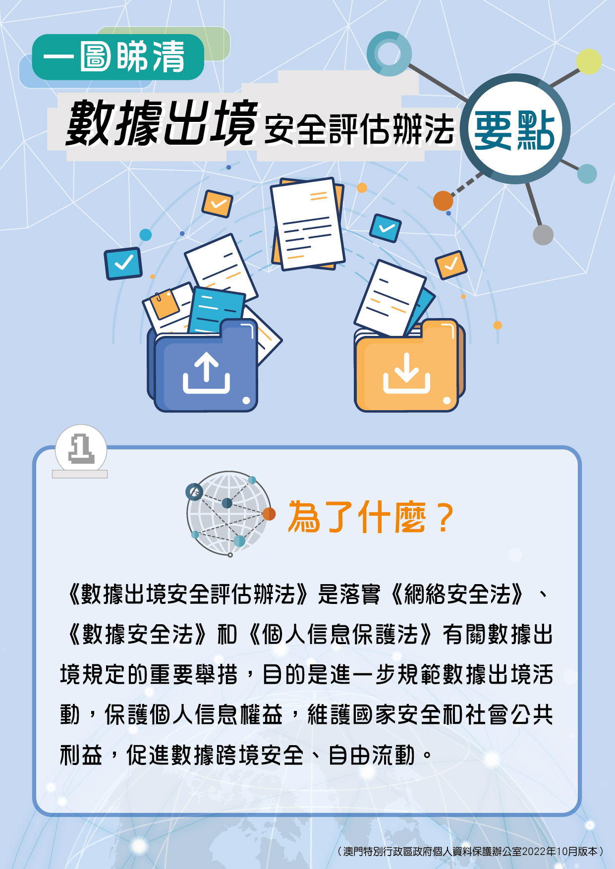 個人資料保護辦公室(下稱“個資辦")呼籲本澳企業了解相關規定,確保依法處理涉及內地跨境的個人資料,而為讓本澳各界了解《評估辦法》的相關規定,個資辦已開展相應合規講解工作,並整理以下重點,供公眾參考: