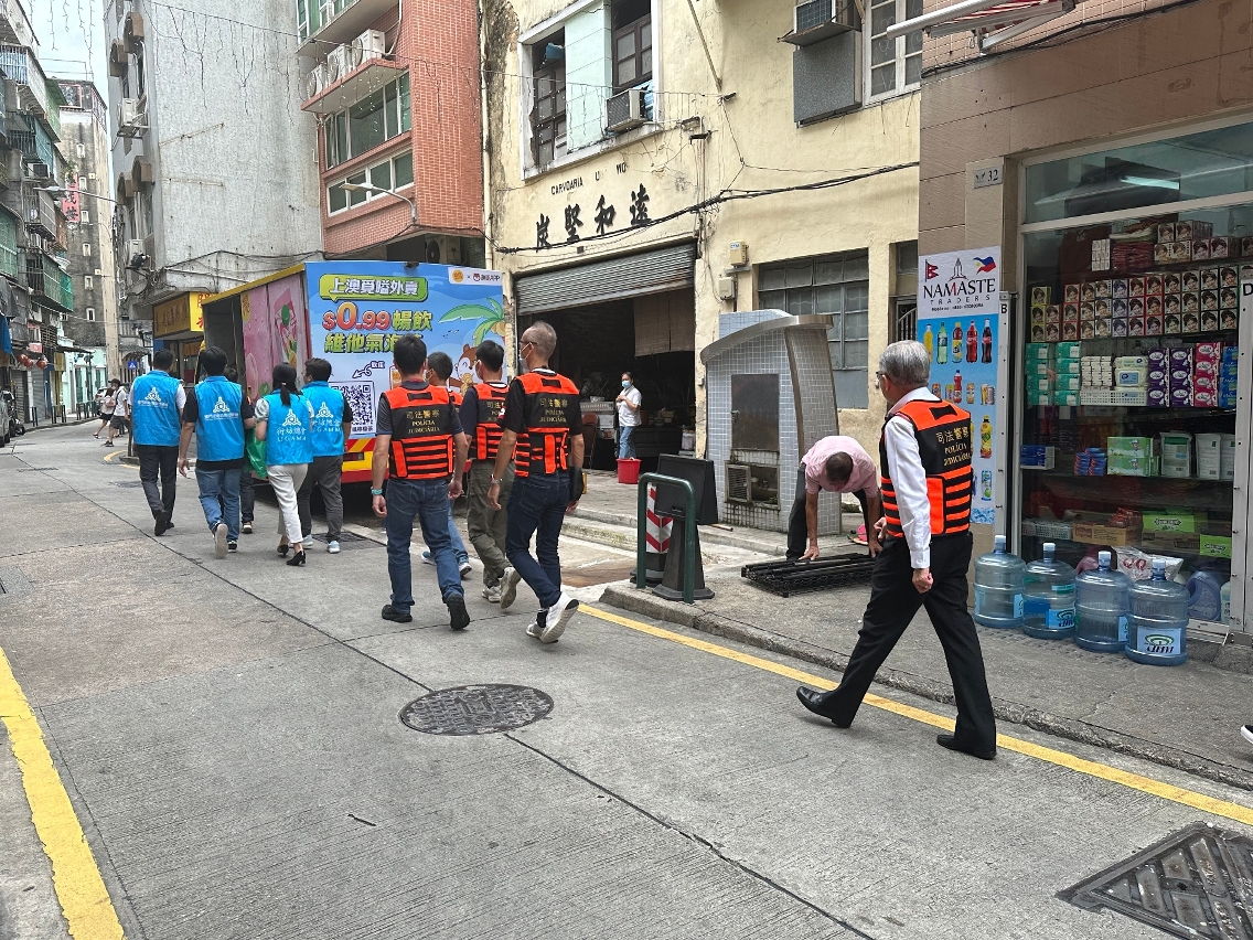 • 司警局人員與撤離區內坊會聯絡,呼籲區內商鋪和居民及早做好防災準備