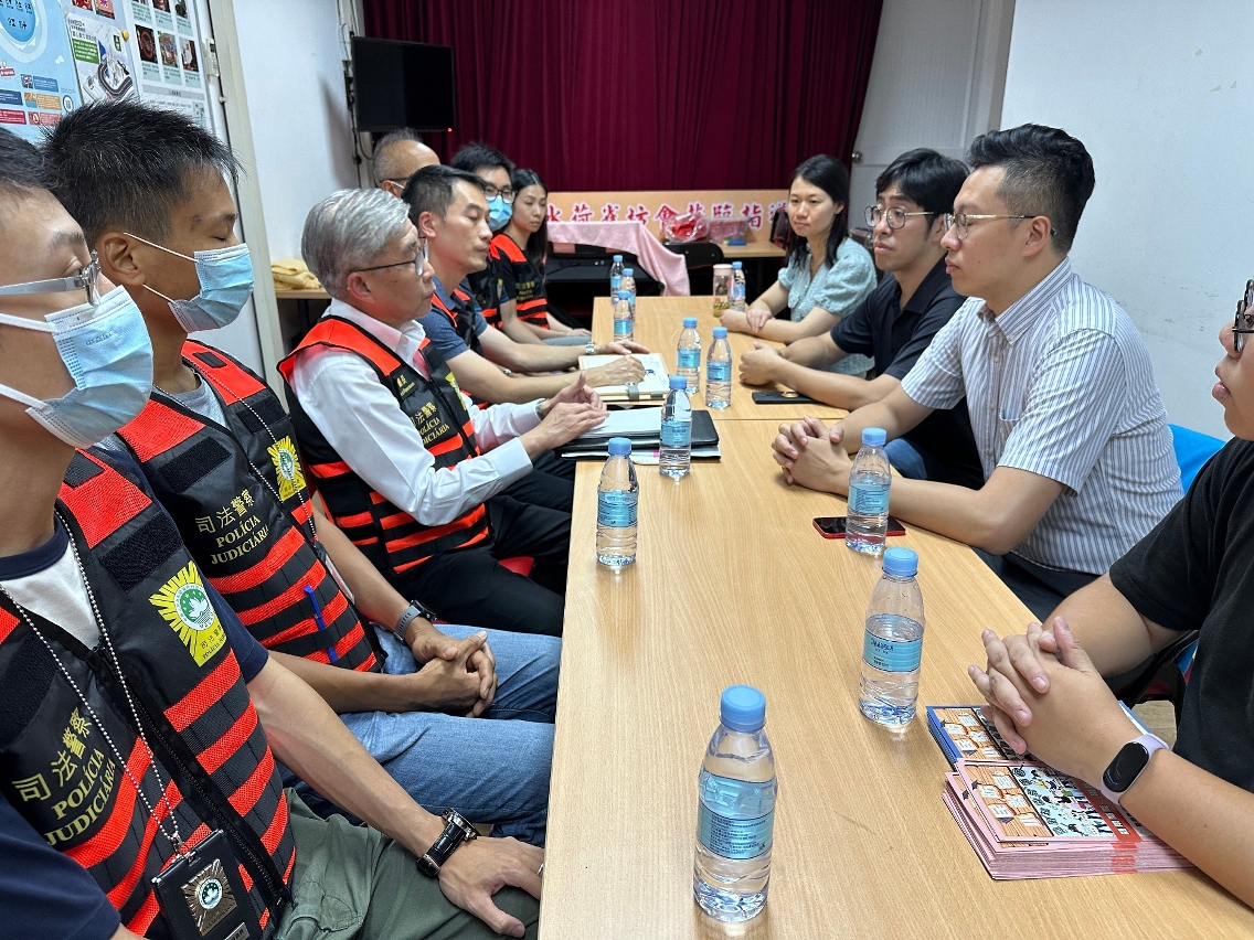 隨後,司警局出動54名刑偵人員前往負責撤離區域(即C區,包括十六浦延伸至安仿西街,再向東移至新口岸區一帶),提醒區內社團和居民做好防風防災防疫措施,檢查區內建築棚架、招牌等易受颱風影響的大型物件的安全狀況,當中重點檢視道路網的渠道是否有堵塞情況,並持續於市面進行防風防罪巡邏,確保市民安全和治安穩定。