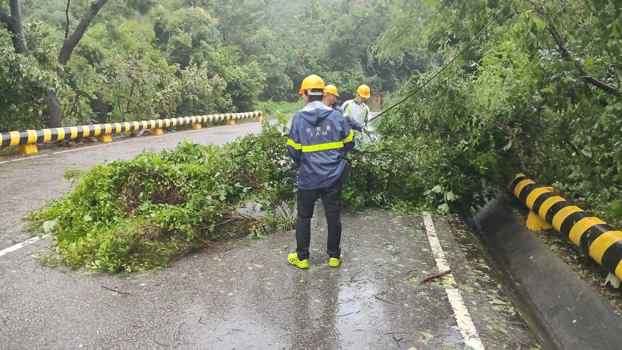 市政署加緊清理馬路上樹木斷枝,以免阻礙交通