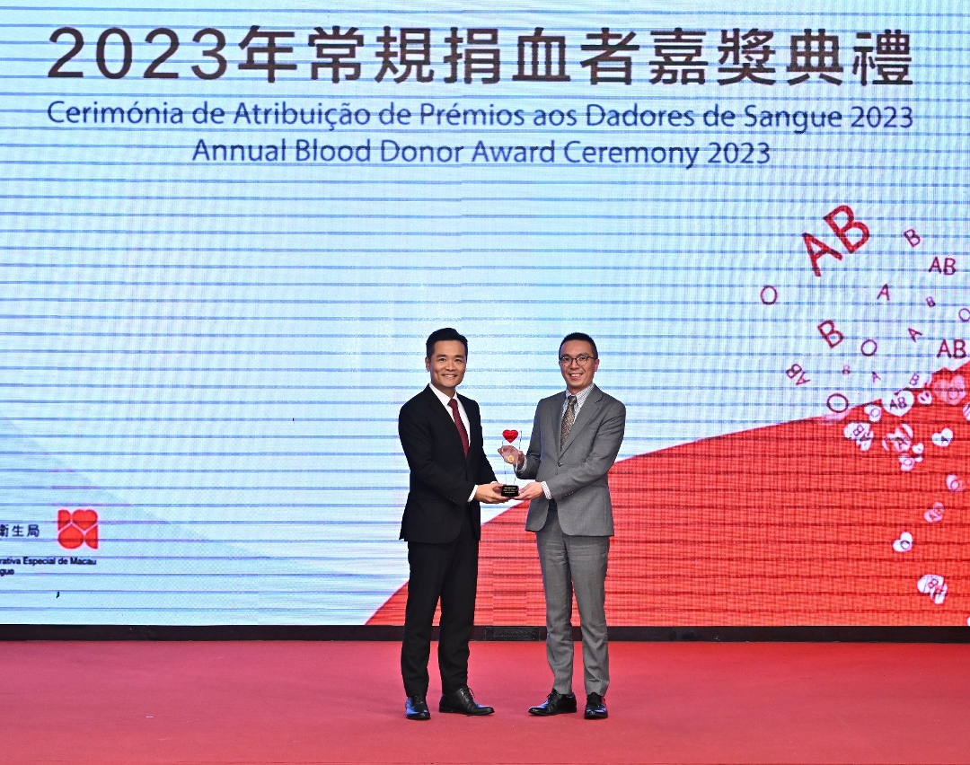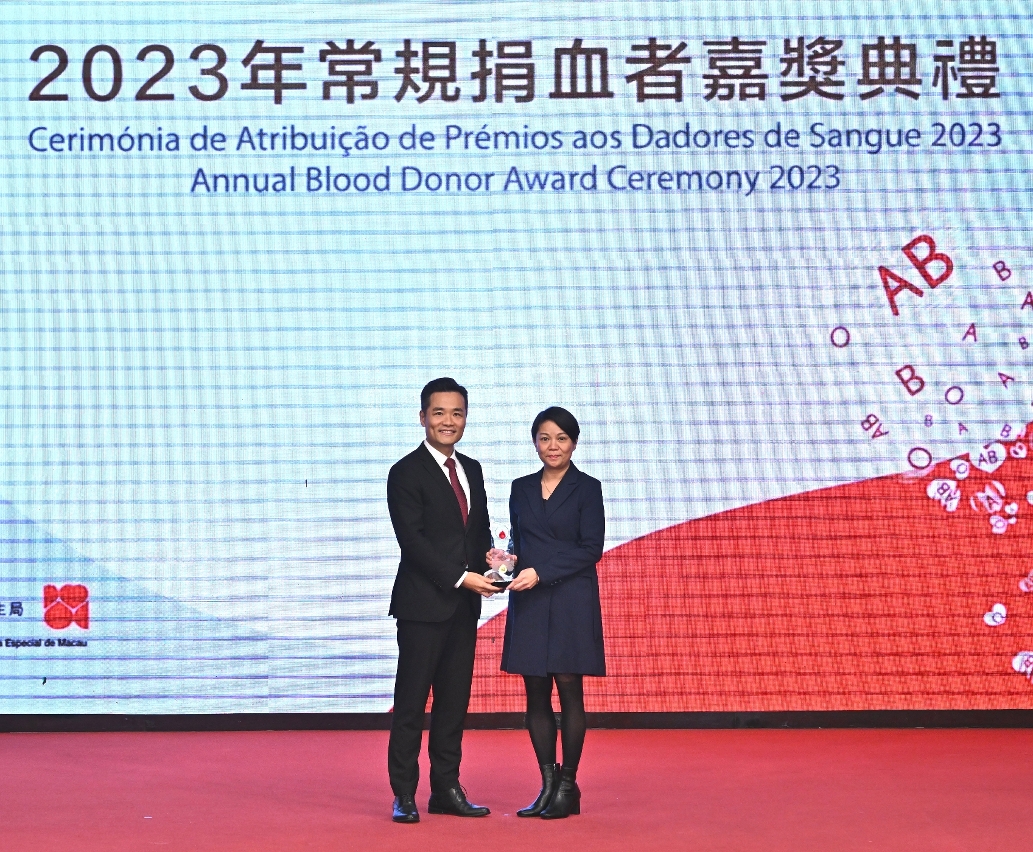 “2023年常規捐血者嘉獎典禮”於日前圓滿舉行,衛生局羅奕龍局長、解放軍駐澳門部隊保障部部長王永軍大校、中聯辦宣傳文化部王惠傑處長等出席了典禮並頒發了奬項。典禮公開表揚無私奉獻的捐血者和積極推動捐血活動的團體機構,以引起社會共同關注和鼓勵更多居民積極參與捐血行動。