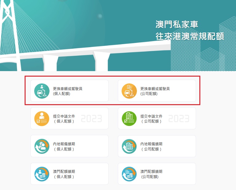 市民可瀏覽“澳門私家車往來港澳常規配額-更換車輛或車輛註冊號碼”及“澳門私家車往來港澳常規配額-更換駕駛員”的相關行政手續指南,了解有關服務詳情。