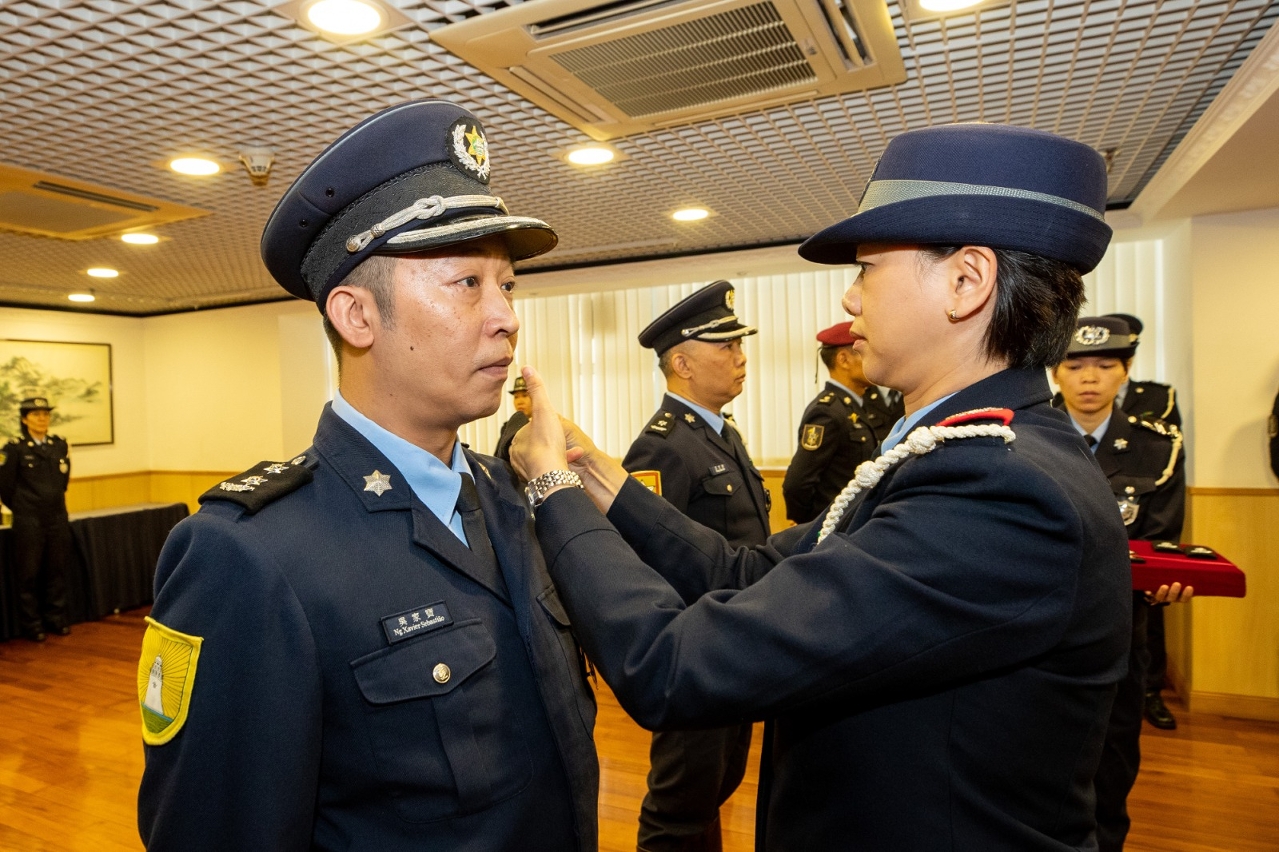 吳錦華局長祝賀晉升人員,並為他們能成為在新晉升制度下首屆獲晉升的高級警長而感到鼓舞。同時勉勵他們牢記使命,忠於國家,守護澳門,服務市民,在崗位上充分發揮才能,透過豐富的工作經驗以及卓越的專業知識,齊心協力,繼續優化現有服務和拓展工作新領域,並配合國家和特區的持續發展,與全澳市民齊心同行、開創未來。