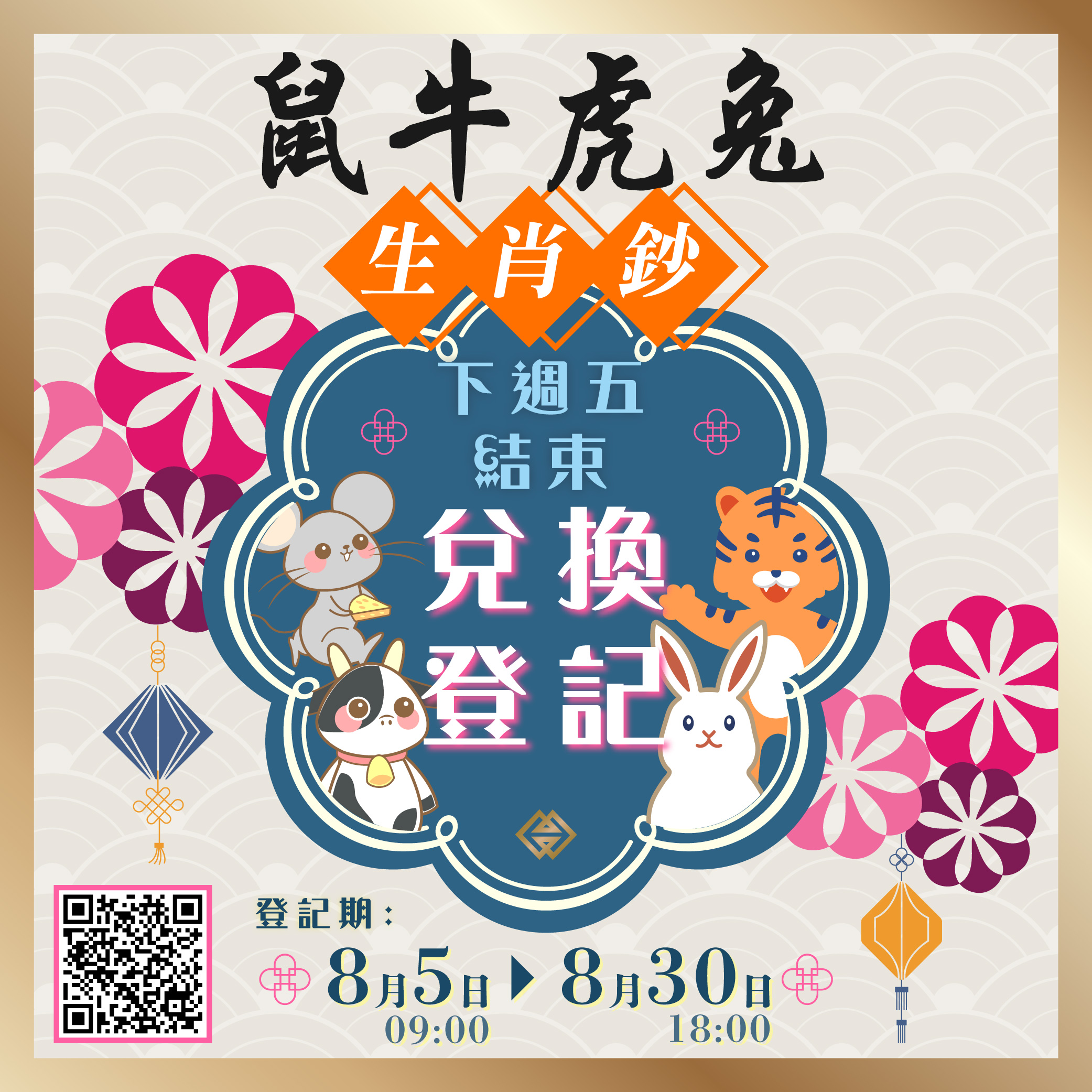 兩家發鈔銀行早年已發行的鼠年、牛年、虎年及兔年生肖鈔的預約兌換登記期,將於2024年8月30日(星期五)下午6時正結束,澳門金融管理局呼籲有意兌換上述鈔票的澳門居民儘快進行網上登記。