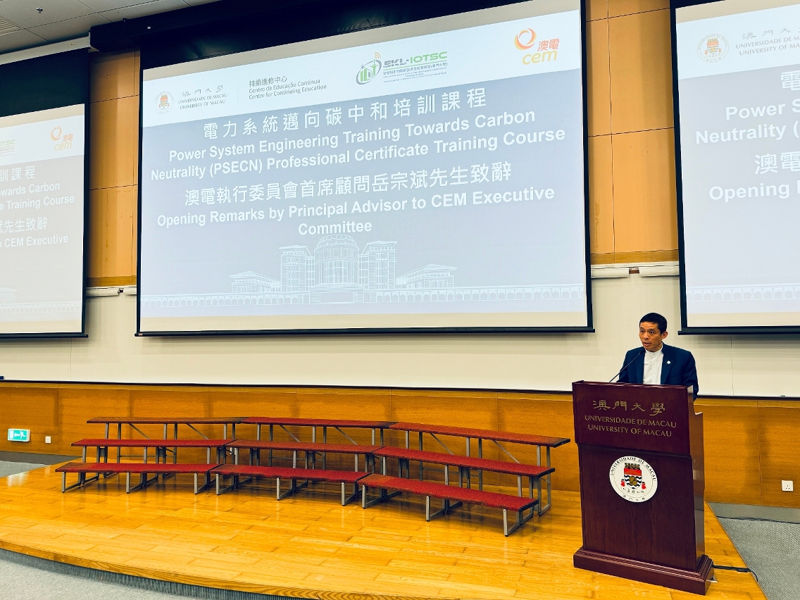 為積極配合國家政策在2060年實現碳中和的目標,澳門大學持續進修中心、澳大智慧城市物聯網國家重點實驗室和澳門電力股份有限公司合辦“電力系統邁向碳中和培訓課程”,培訓澳門電機工程師掌握電力系統邁向碳中和的技能。
